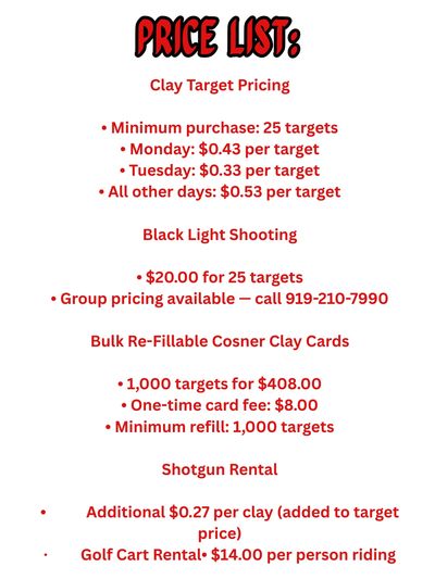 An additional .27 cents per clay for Shotgun Rental
